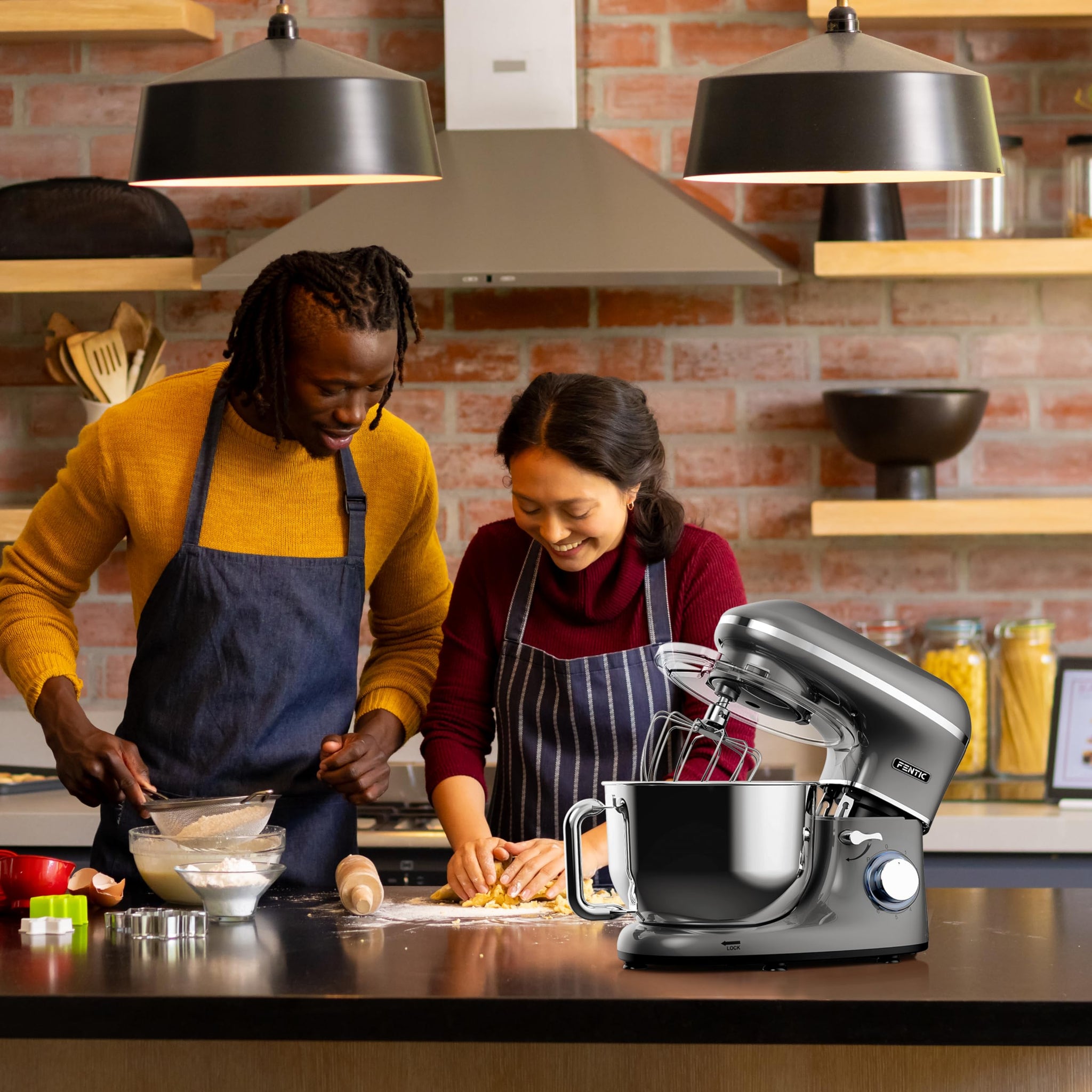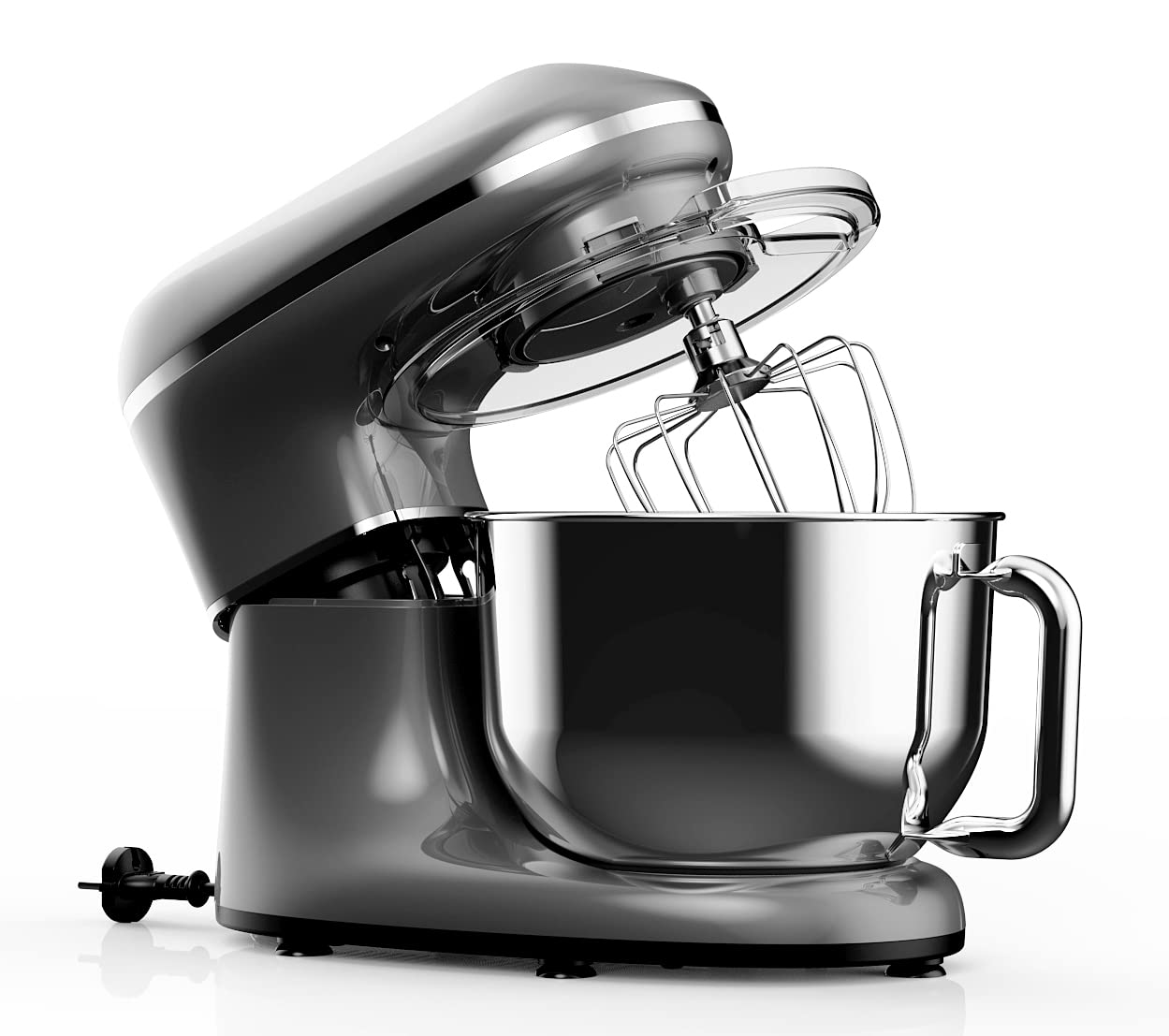 Fentic Küchenmaschine - 2000W - Edelstahl Rührschüssel (6,2 L) - Knetmaschine mit Rührhaken, Knethaken, Schlagbesen und Spritzschutz - Inkl. zusätzlichem Zubehör - Anthrazit